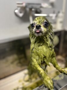 皮膚・被毛の状態に合ったシャンプーを使い、丁寧に洗い上げて乾かします。
